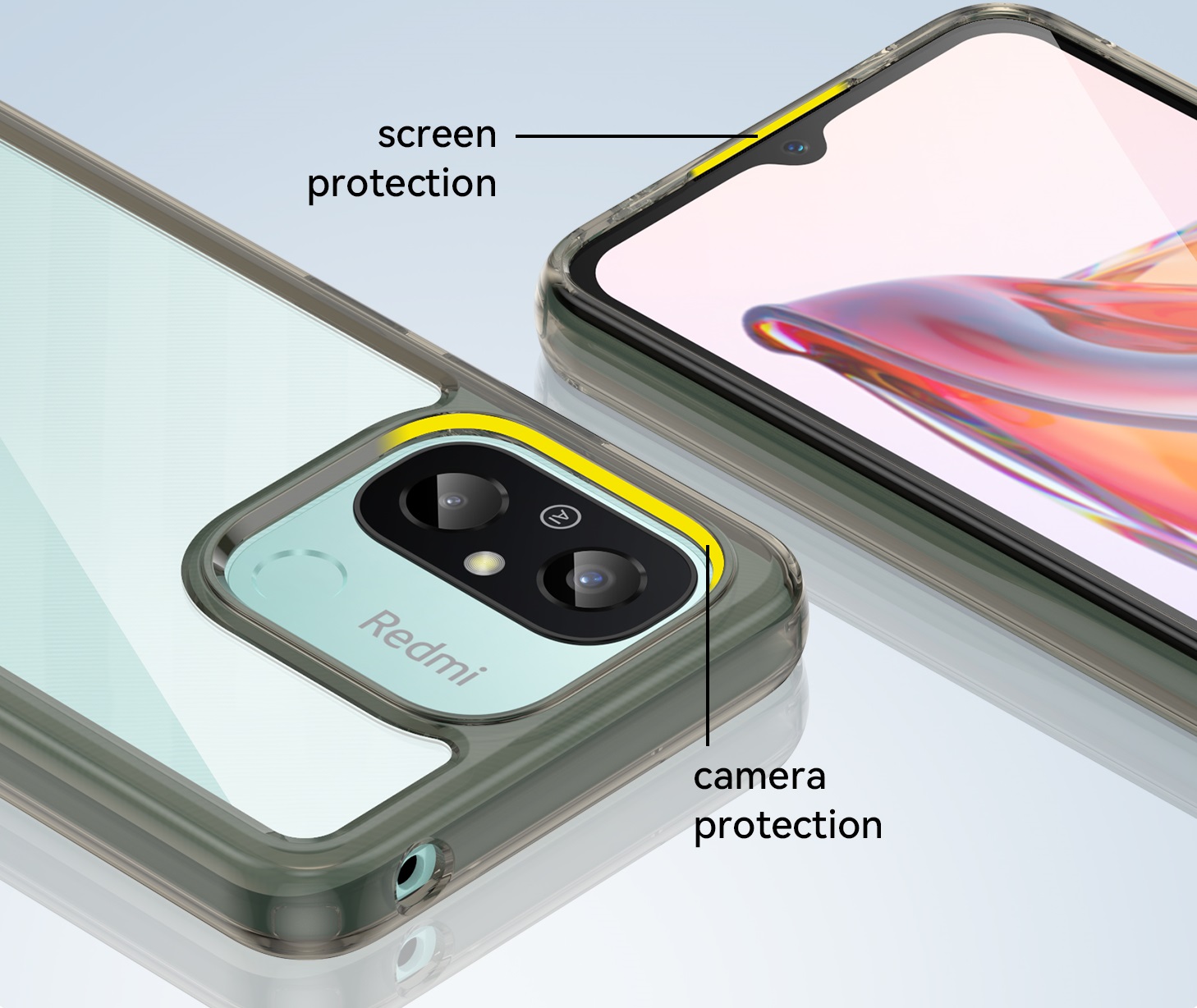 Защитный, противоударный чехол с усиленными боковыми рамками серого цвета для дисплея на телефон Xiaomi Redmi 12C с 2023 года от Caseport, серия Fusion