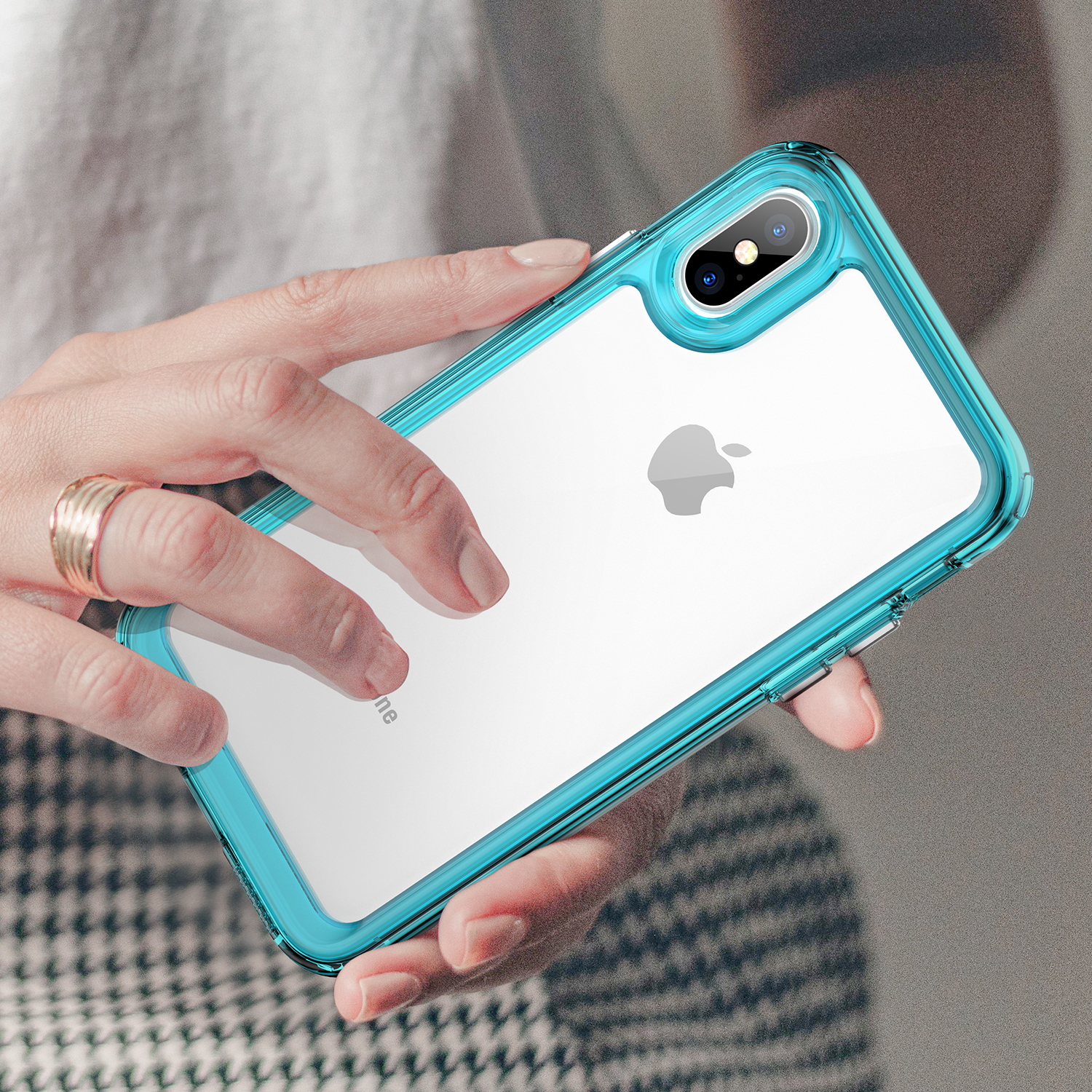 Защитный противоударный чехол с усиленными боковыми рамками бирюзового цвета для дисплея на телефон iPhone X и XS от Caseport, серия Fusion