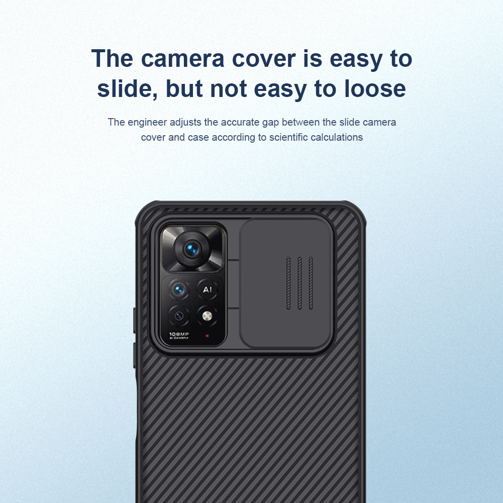 Противоударный усиленный чехол синего цвета с защитной крышкой задней камеры от Nillkin серии CamShield Pro Case для телефона Xiaomi Redmi Note 11 Pro Глобальная версия, 11 Pro 5G Глобальная версия, 11 Pro+ 5G India, 11E Pro 5G и Redmi Note 12 Pro 4G создан для любителей активного отдыха.