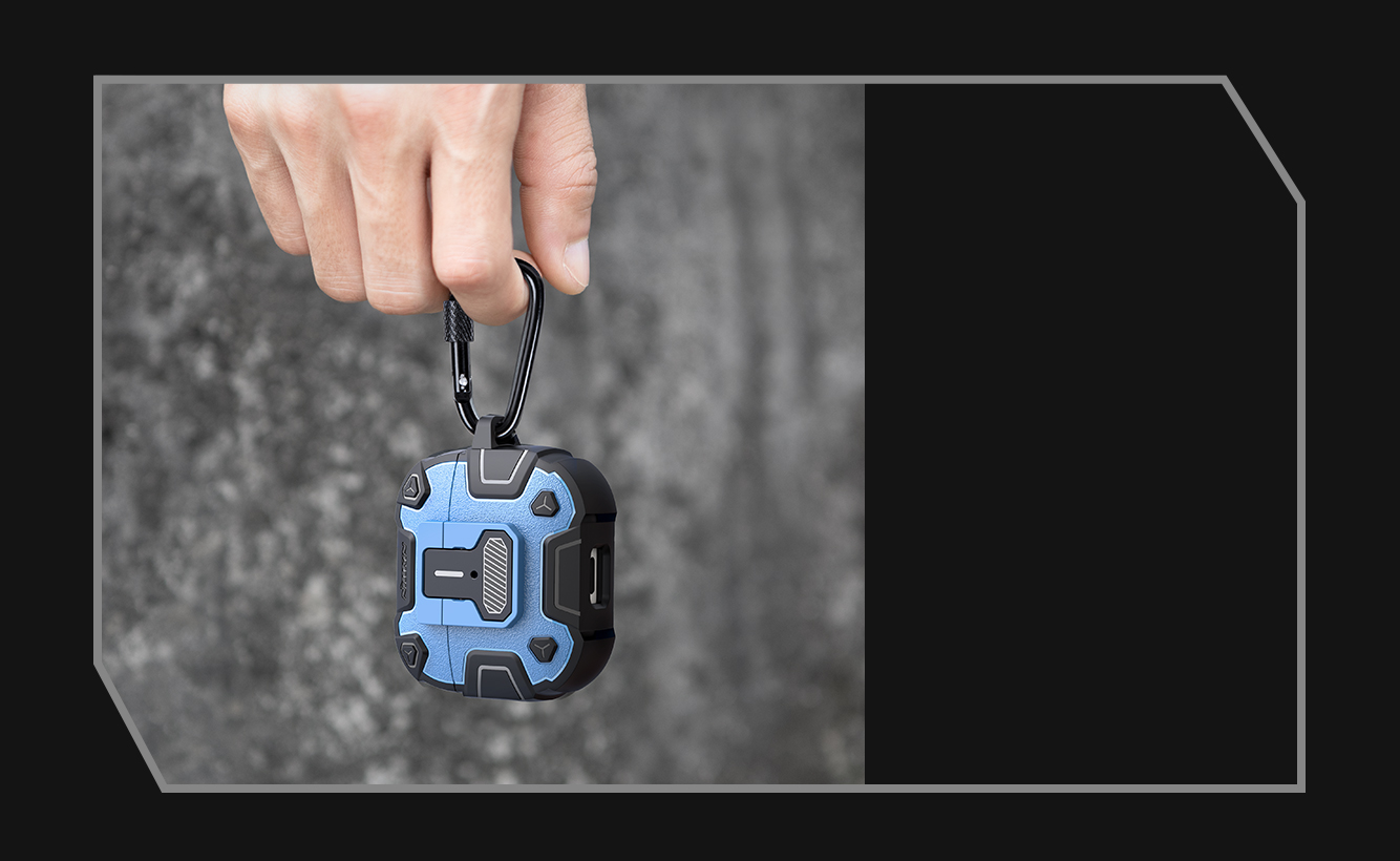 Чехол синего цвета для AirPods Pro 2 выполнен из высококачественного, плотного TPU + PC, обеспечивает плотное прилегание и надёжную защиту. Защитный чехол поддерживает проводную и беспроводную зарядку без снятия чехла AirPod Pro 2. Виден передний светодиод зарядного кейса.
