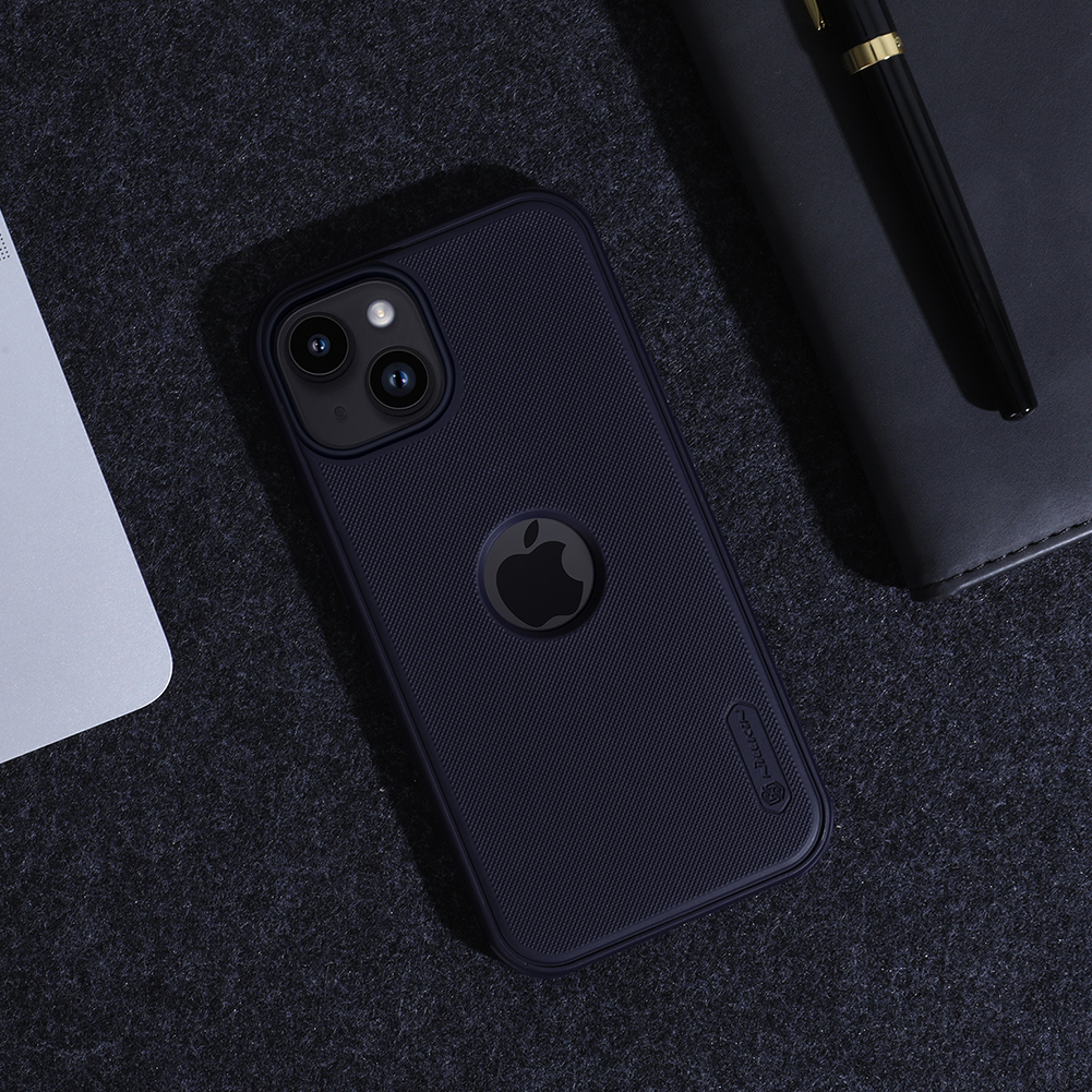 Защитный чехол темно-фиолетового цвета (Deep Purple) от Nillkin серии Super Frosted Shield (версия с вырезом под лого) для смартфона iPhone 14 и 13 с усиленными боковыми рамками по четырем углам, изготавливается из экологичных материалов PC и TPU путем высокоточного литья под давление с высокой температурой.
