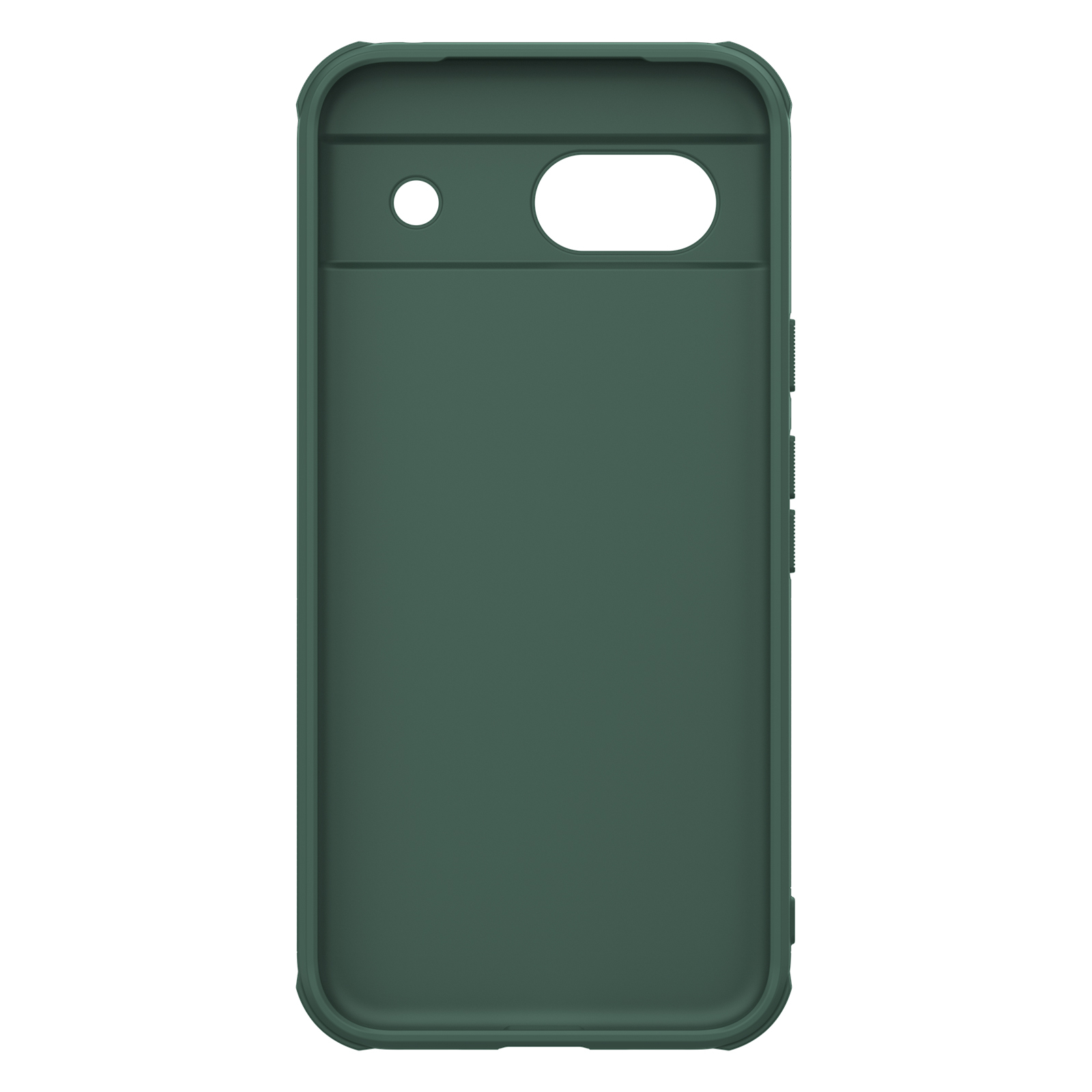 Защитный чехол зеленого цвета (Deep Green) от Nillkin серии Super Frosted Shield Pro для смартфона Google Pixel 8A с усиленными боковыми рамками по четырем углам, изготавливается из экологичных материалов PC и TPU путем высокоточного литья под давление с высокой температурой.