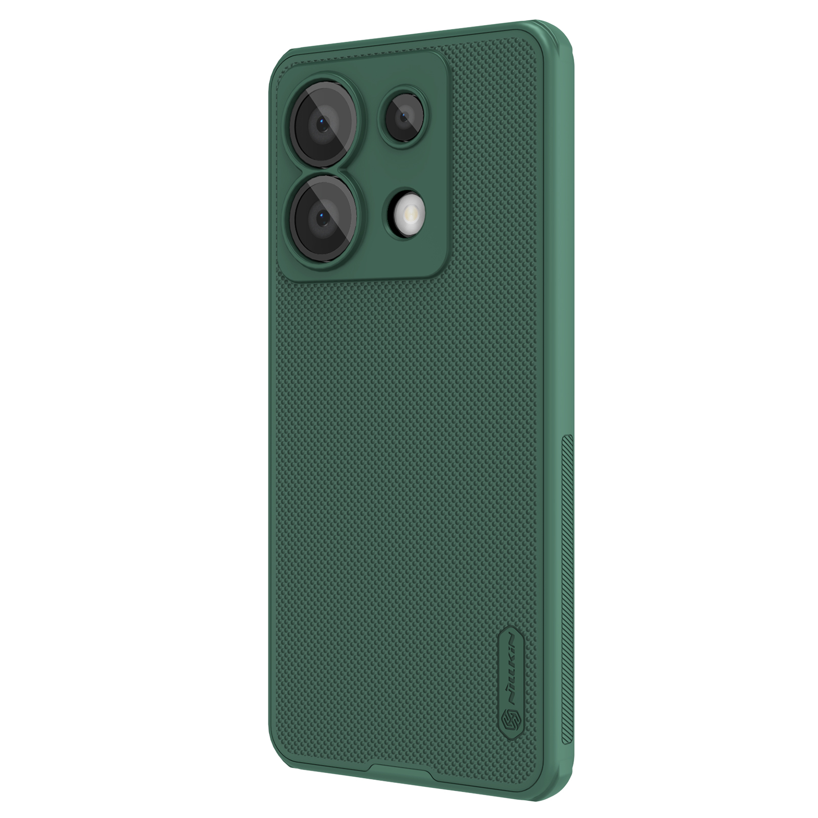 Защитный чехол зеленого цвета (Deep Green) от Nillkin серии Super Frosted Shield Pro для смартфона Xiaomi Redmi Note 13 Pro 5G и Poco X6 5G с усиленными боковыми рамками по четырем углам, изготавливается из экологичных материалов PC и TPU путем высокоточного литья под давление с высокой температурой.