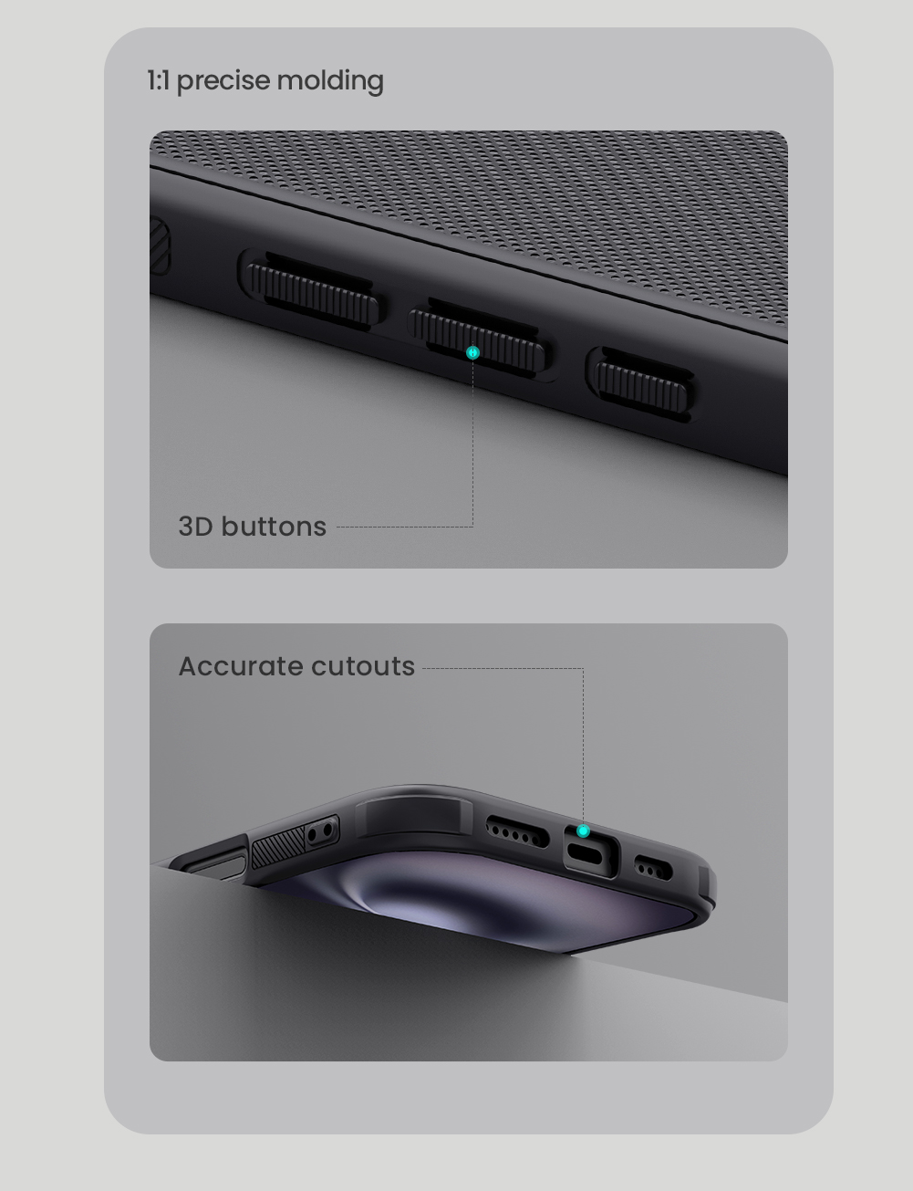 Поверхность чехла имеет характерный рельефный дизайн, обладает высокой износостойкостью, а также противоскользящими и пыленепроницаемыми свойствами. Защита от отпечатков пальцев и простота очистки.