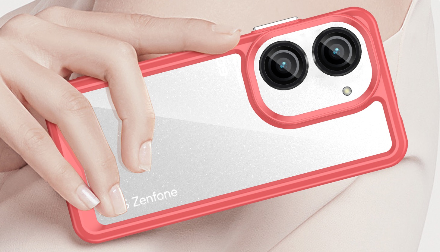 Защитный, противоударный чехол с усиленными красными боковыми рамками для дисплея на телефон Asus Zenfone 9 от Caseport, серия Fusion