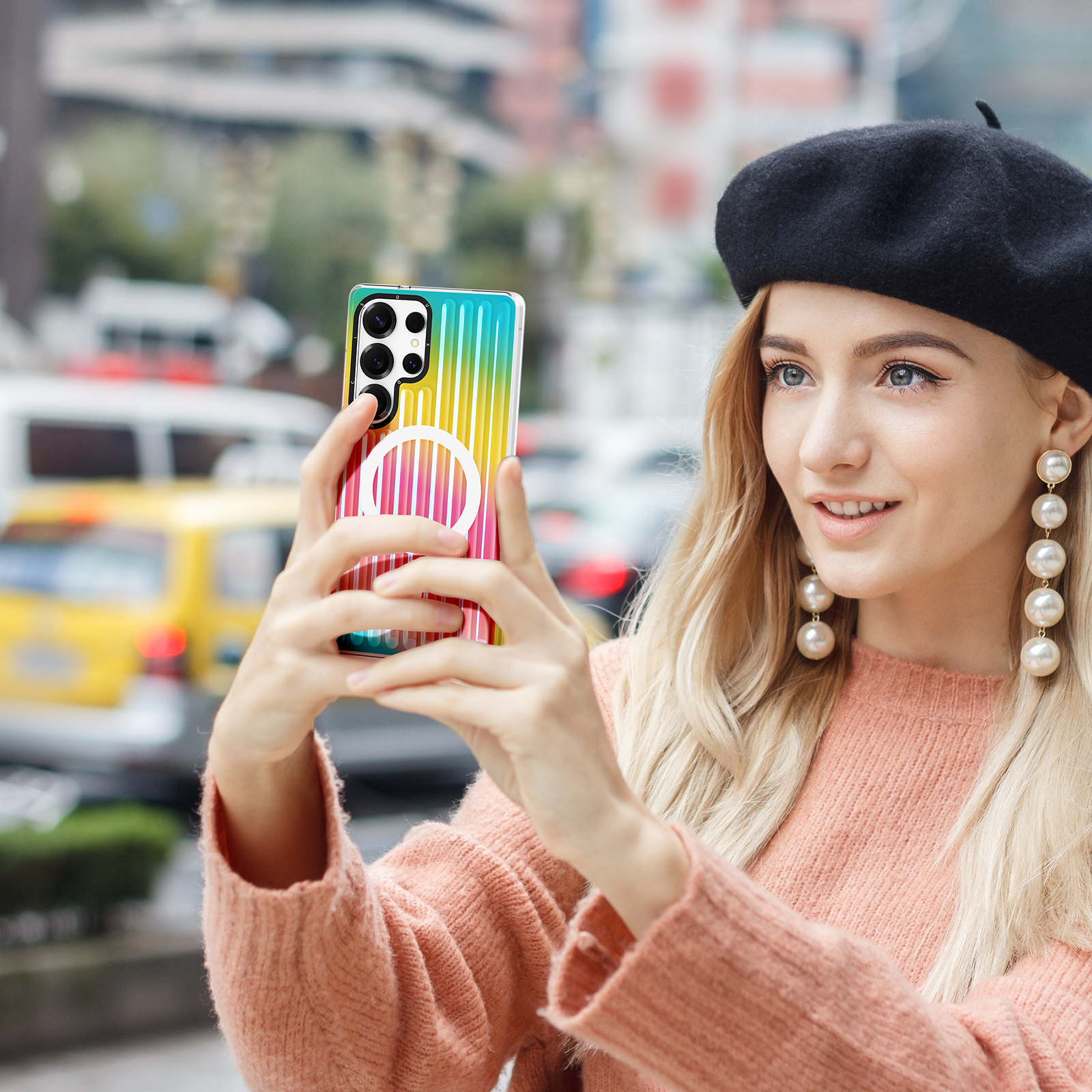 Усиленный прозрачный чехол (Gradient Rainbow) с поддержкой беспроводной магнитной зарядки MagSafe от Dux Ducis для Samsung Galaxy S25 Ultra, серия Zest Series Case