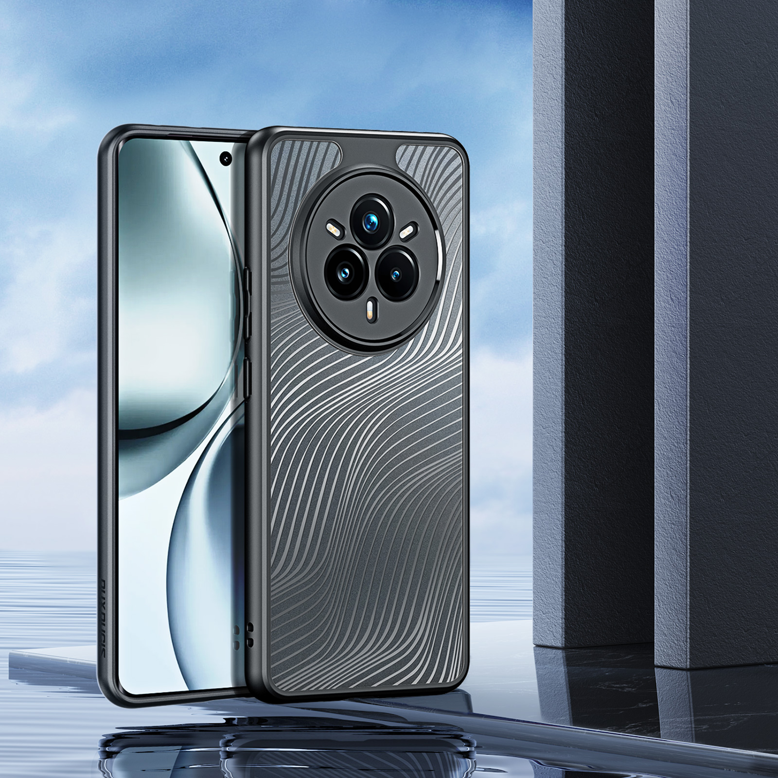Тонкий чехол с мягкими черными рамками от Dux Ducis серии Aimo Series Case для смартфона Realme 14 Pro изготавливается из экологичных материалов путем высокоточного литья под давление с высокой температурой.