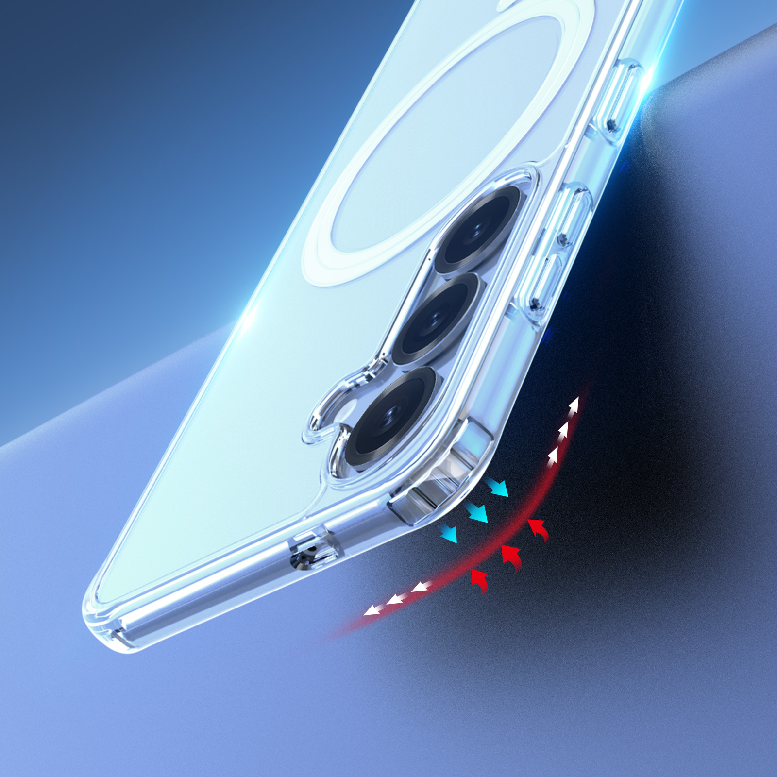 Усиленный чехол с поддержкой беспроводной зарядки MagSage от Dux Ducis серии Clin Mag Series Case для смартфона Samsung Galaxy S25+ изготавливается из экологичных материалов путем высокоточного литья под давление с высокой температурой.