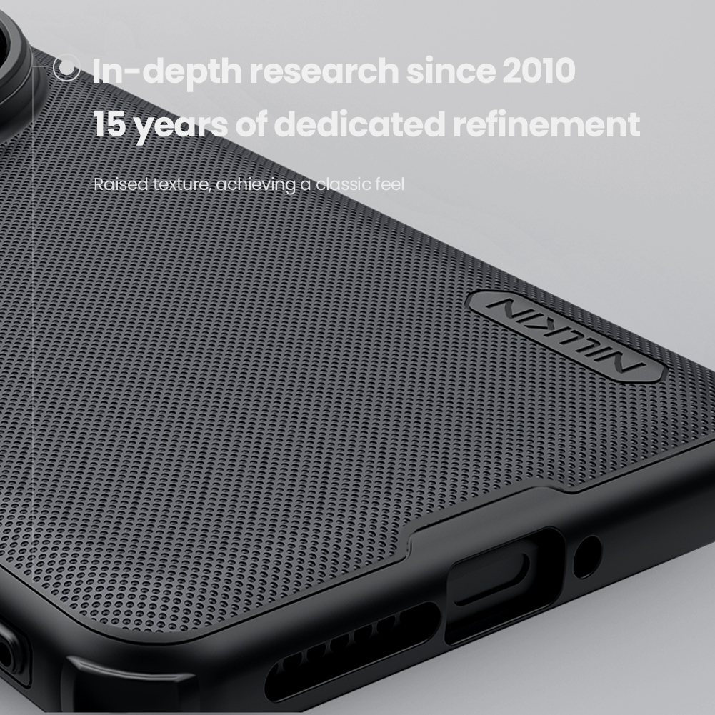 Защитный чехол черного цвета от Nillkin серии Super Frosted Shield для смартфона Xiaomi 15 Ultra с усиленными боковыми рамками по четырем углам, изготавливается из экологичных материалов PC и TPU путем высокоточного литья под давление с высокой температурой.