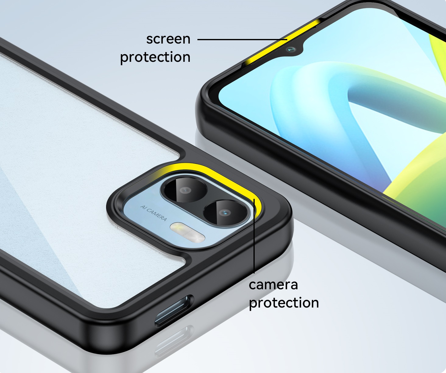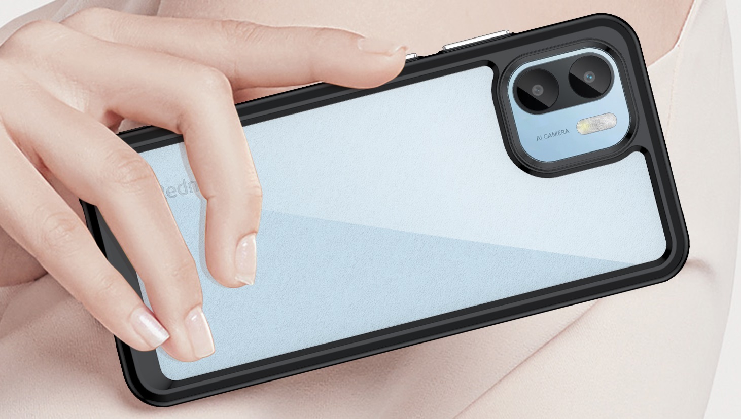 Защитный, противоударный чехол с усиленными боковыми рамками черного цвета для дисплея на телефон Xiaomi Redmi A1 от Caseport, серия Fusion