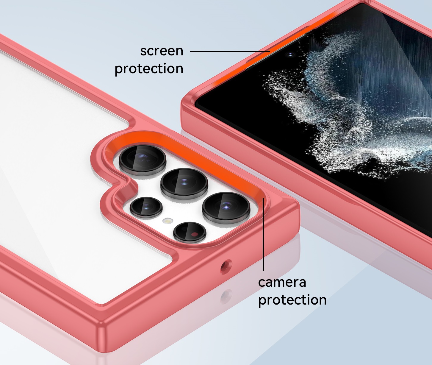 Защитный, противоударный чехол с усиленными боковыми рамками красного цвета для дисплея на телефон Samsung Galaxy S23 Ultra с 2023 года от Caseport, серия Fusion