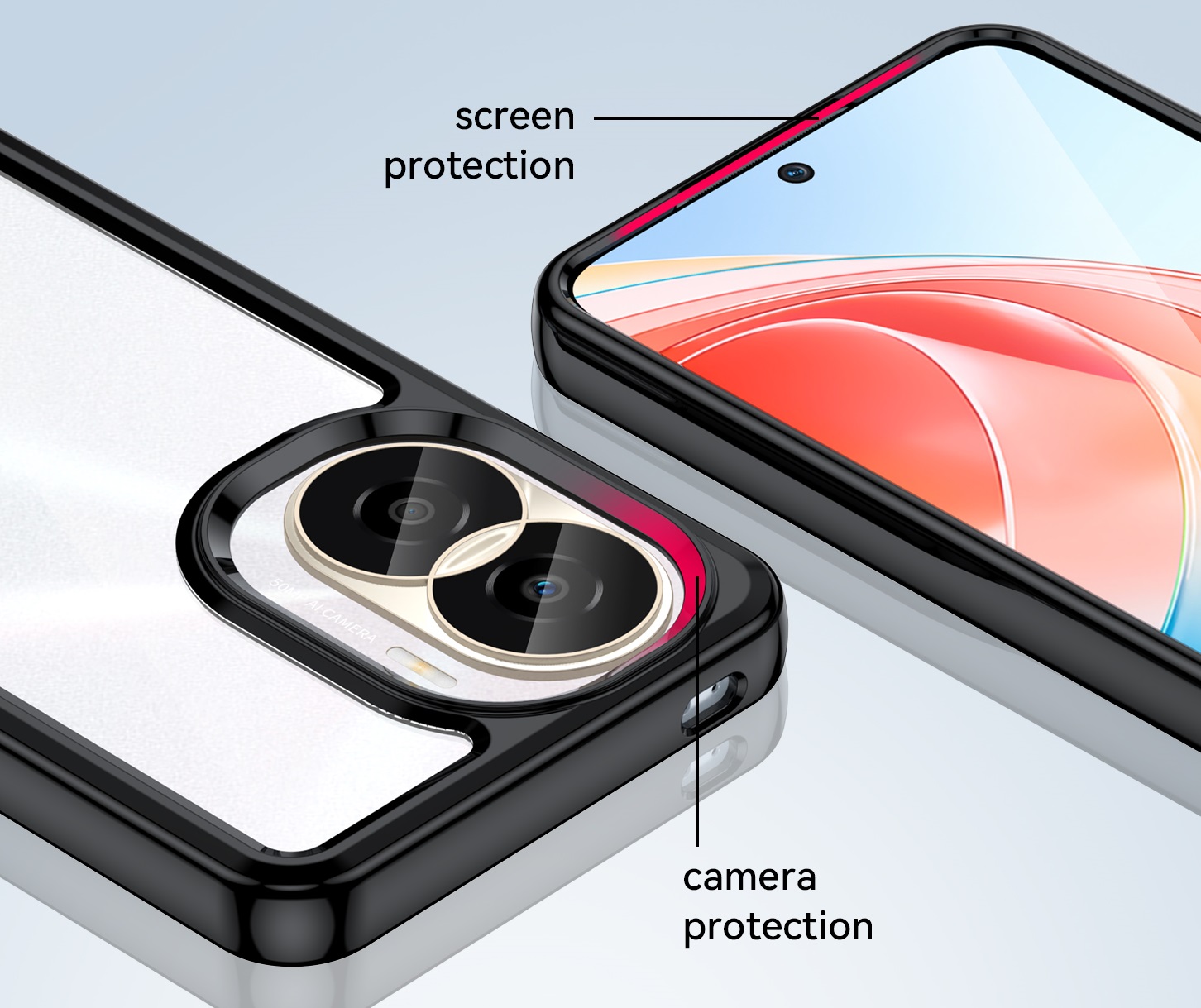 Специальные бортики на чехле приподнимают смартфон, не давая соприкасаться экрану и камере с плоскими поверхностями.