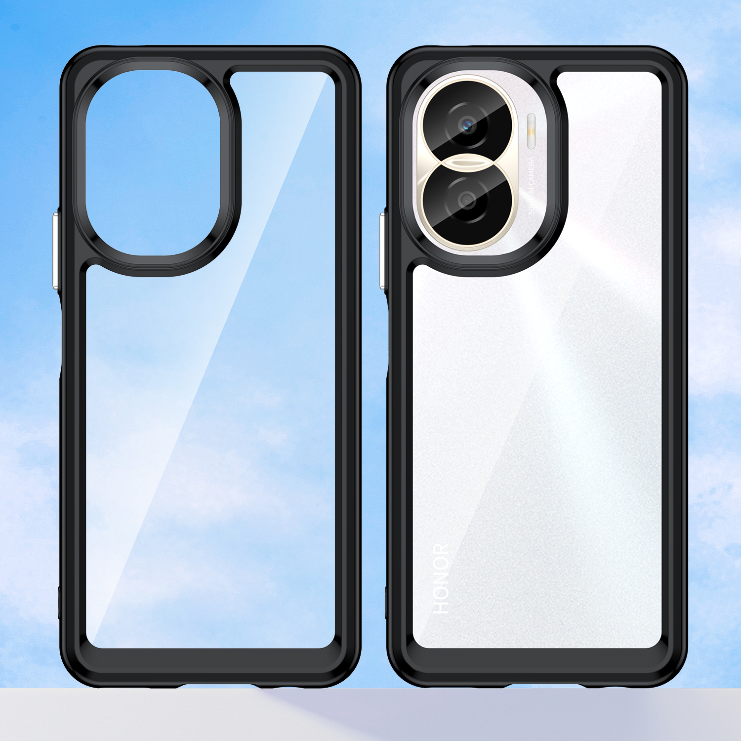 Защитный, противоударный чехол с усиленными боковыми рамками черного цвета для дисплея на телефон Honor X40i от Caseport, серия Fusion