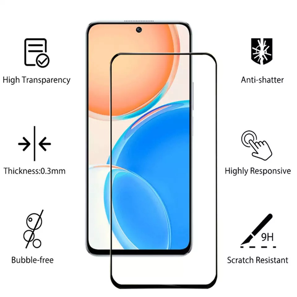 Защитное закаленное стекло 6D с олеофобным покрытием на дисплей для телефона Honor X8 с 2022 года изготовлено из материалов высокого качества.