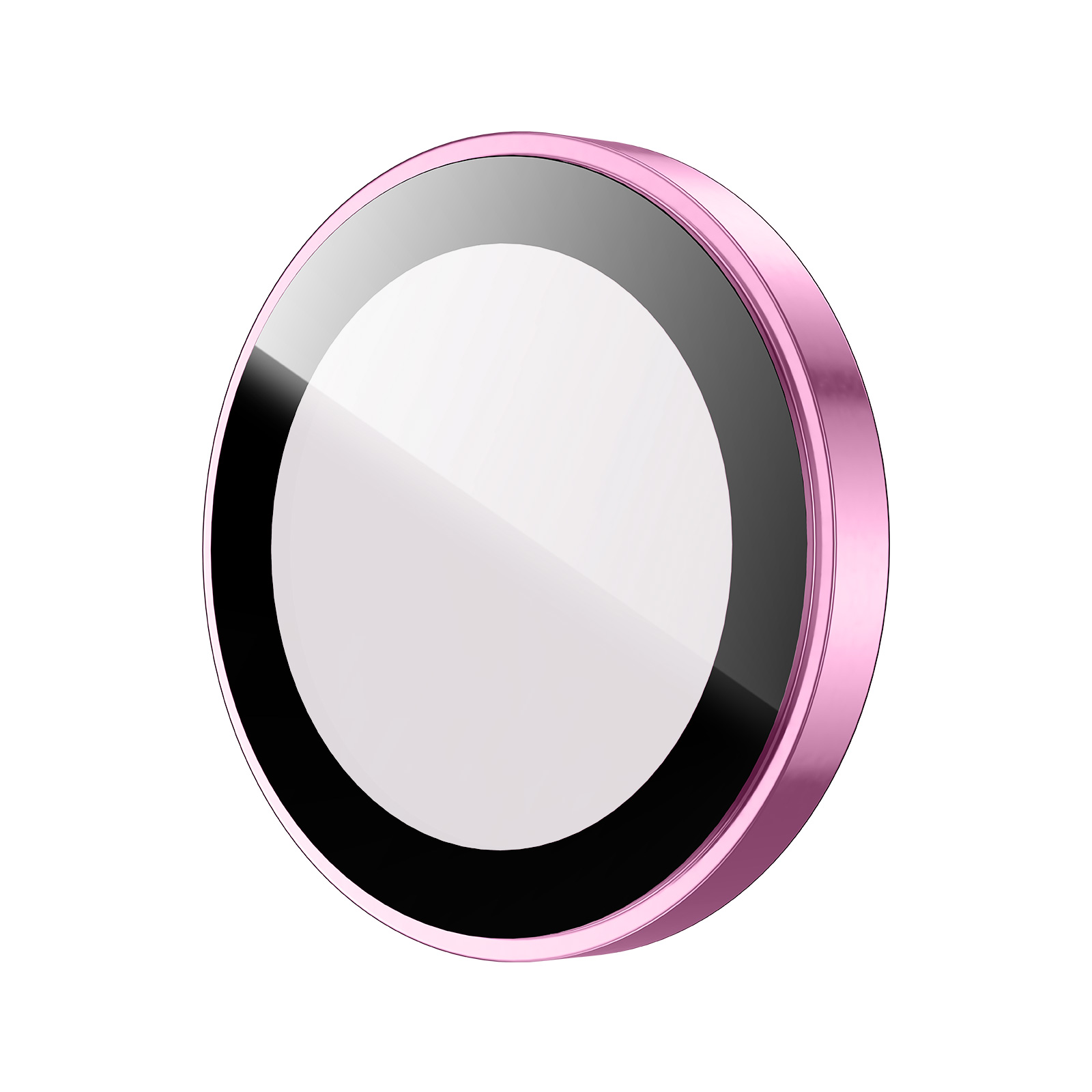 Закаленное стекло на камеры смартфона iPhone 16 и 16 Plus от Dux Ducis серии HAWK Series Camera Lens Protector с алюминиевой рамкой по периметру розового цвета (Rose Pink)