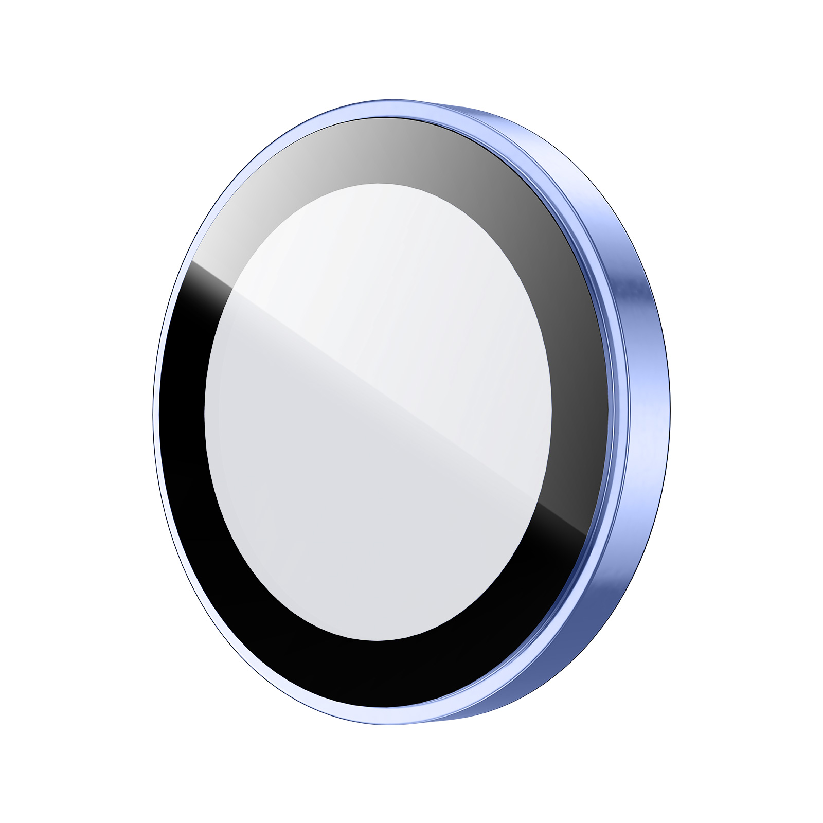 Закаленное стекло на камеры смартфона iPhone 16 и 16 Plus от Dux Ducis серии HAWK Series Camera Lens Protector с алюминиевой рамкой по периметру синего цвета