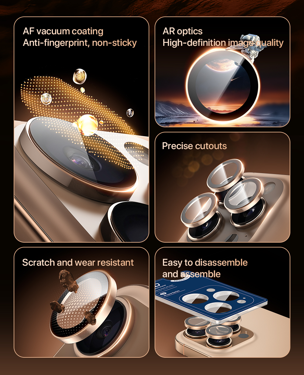 Закаленное стекло на камеры смартфона iPhone 16 и 16 Plus от Dux Ducis серии HAWK Series Camera Lens Protector с алюминиевой рамкой по периметру зеленого цвета