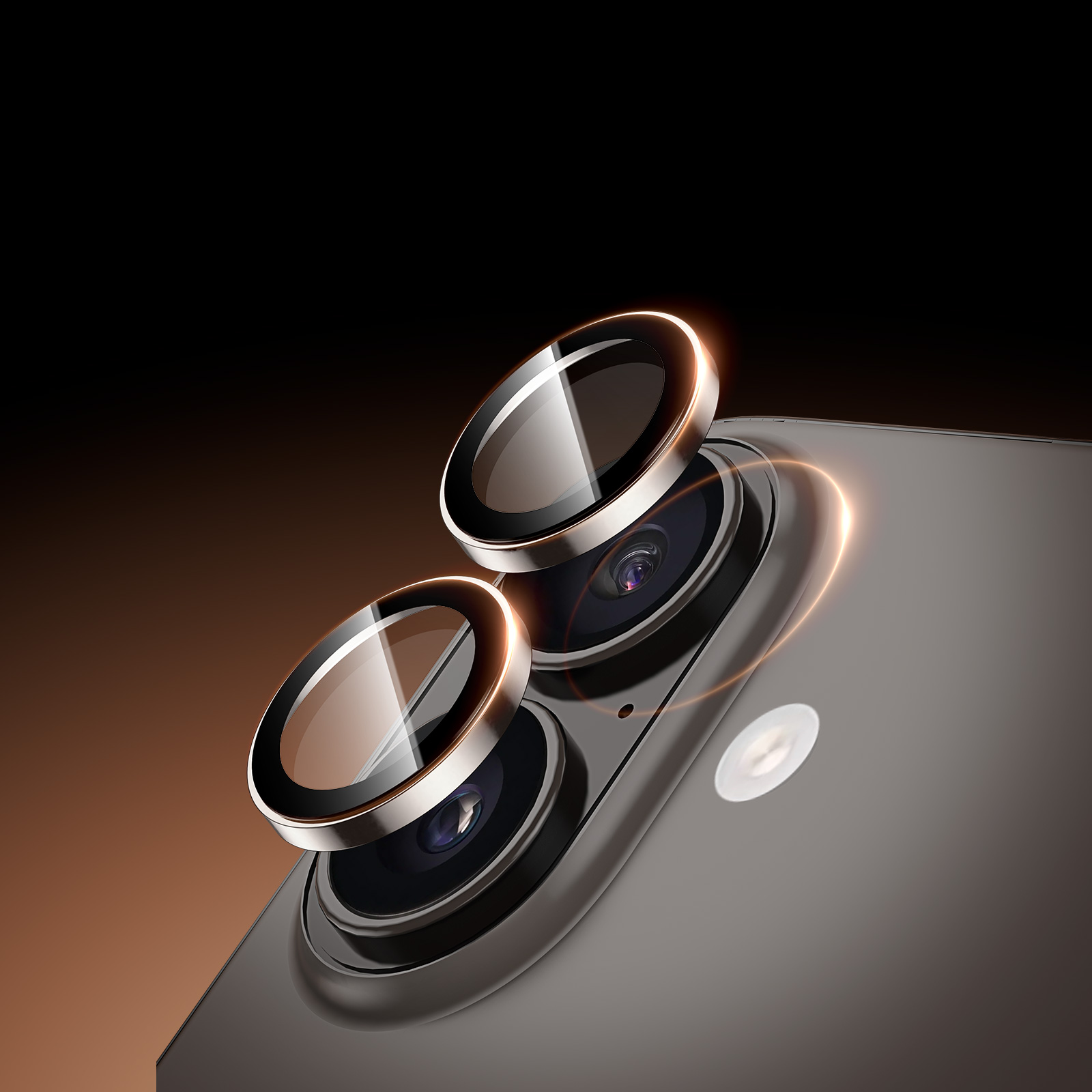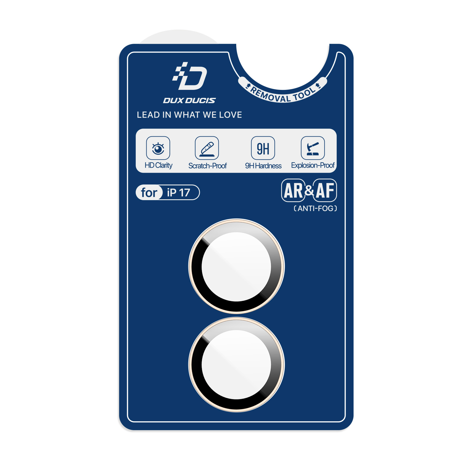 Закаленное стекло на линзы камеры для смартфона iPhone 17 от Dux Ducis серии HAWK Series Camera Lens Protector с алюминиевой рамкой лавандового цвета по периметру.