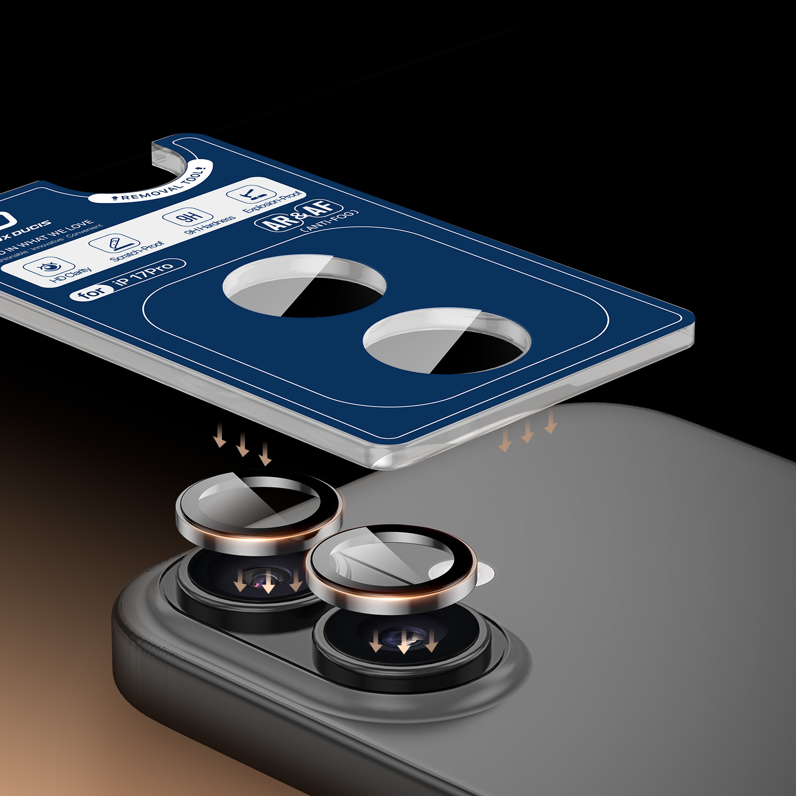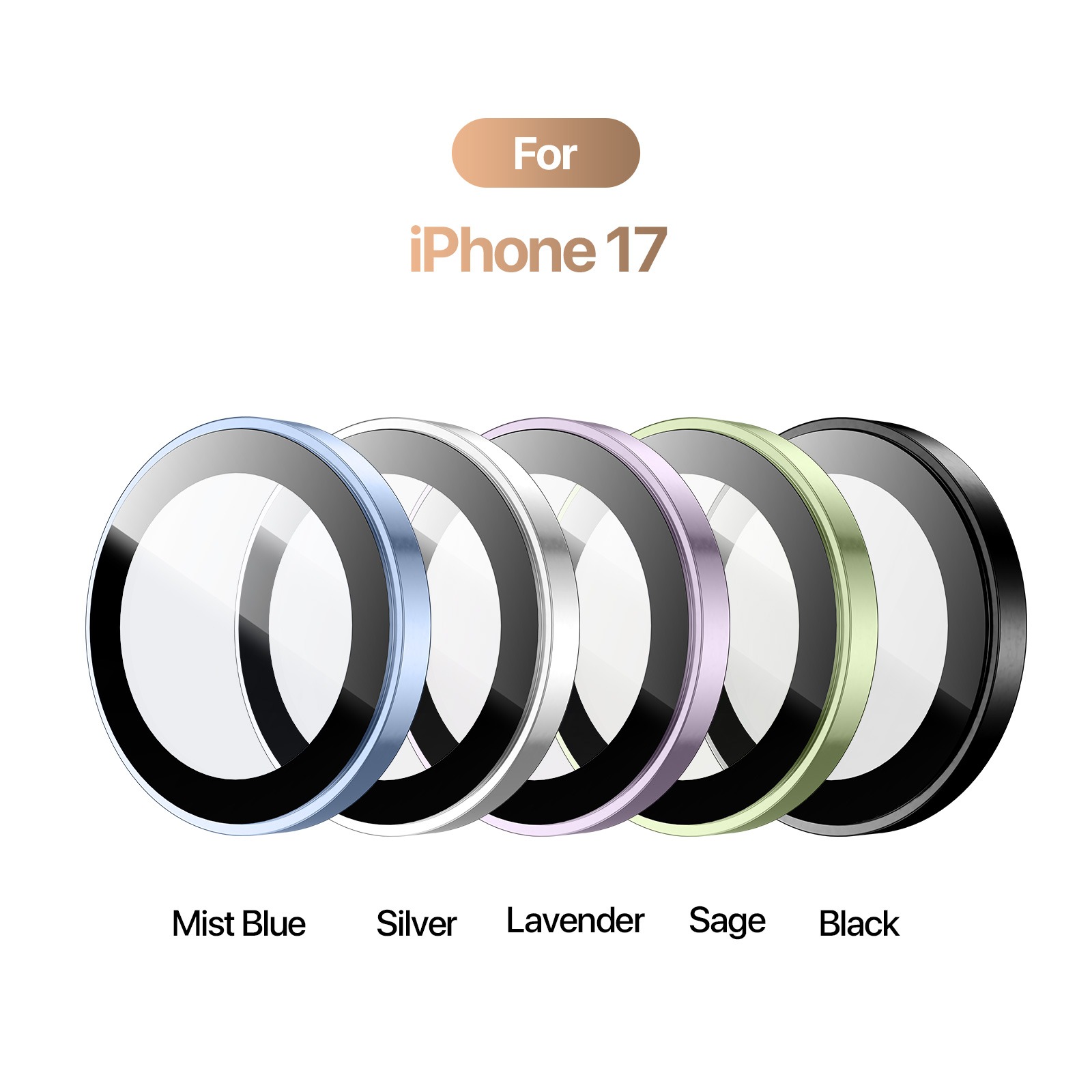 Закаленное стекло на линзы камеры для смартфона iPhone 17 от Dux Ducis серии HAWK Series Camera Lens Protector с алюминиевой рамкой зеленого цвета (Sage) по периметру.