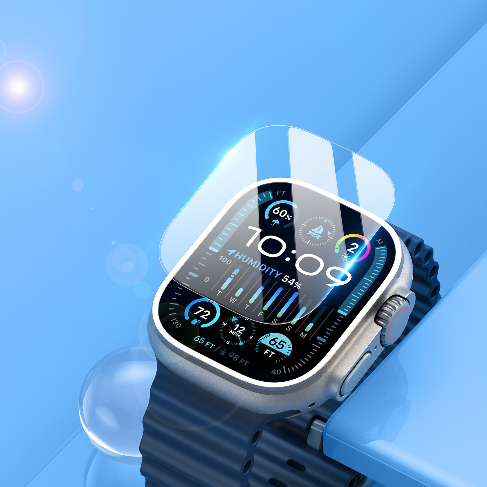 Изготовлено из закаленного стекла с высоким содержанием алюминия, уровень твердости 9H, полностью покрывает экран часов с 3D-изогнутыми краями. Оно эффективно защищает экран от царапин острыми предметами, поэтому вам больше не придется беспокоиться о том, что экран разобьется из-за падения часов.