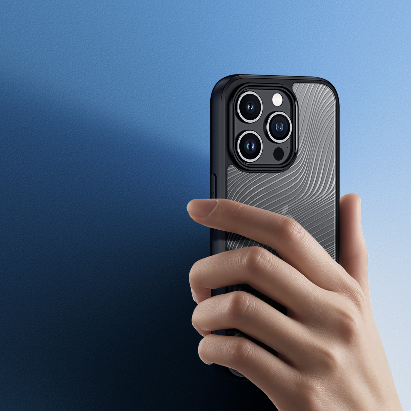 Тонкий чехол с мягкими черными рамками от Dux Ducis серии Aimo Series Case для смартфона iPhone 15 Pro изготавливается из экологичных материалов путем высокоточного литья под давление с высокой температурой.
