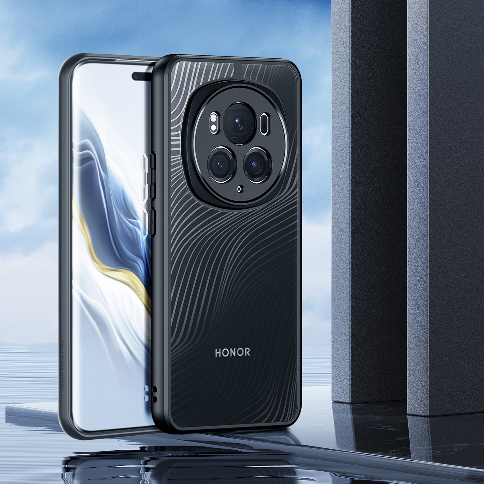 Тонкий чехол с мягкими черными рамками от Dux Ducis серии Aimo Series Case для смартфона Honor Magic 6 Pro изготавливается из экологичных материалов путем высокоточного литья под давление с высокой температурой.
