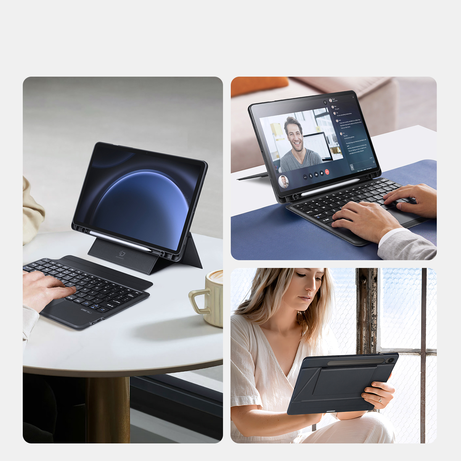 Защитный чехол подставка с клавиатурой (RUS) от Dux Ducis для Samsung Tab S10 FE, Tab S9 и Tab S9 FE, серия DK Series Keyboard, русская клавиатура с подсветкой