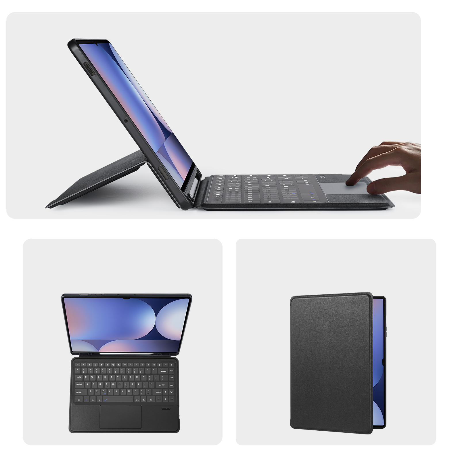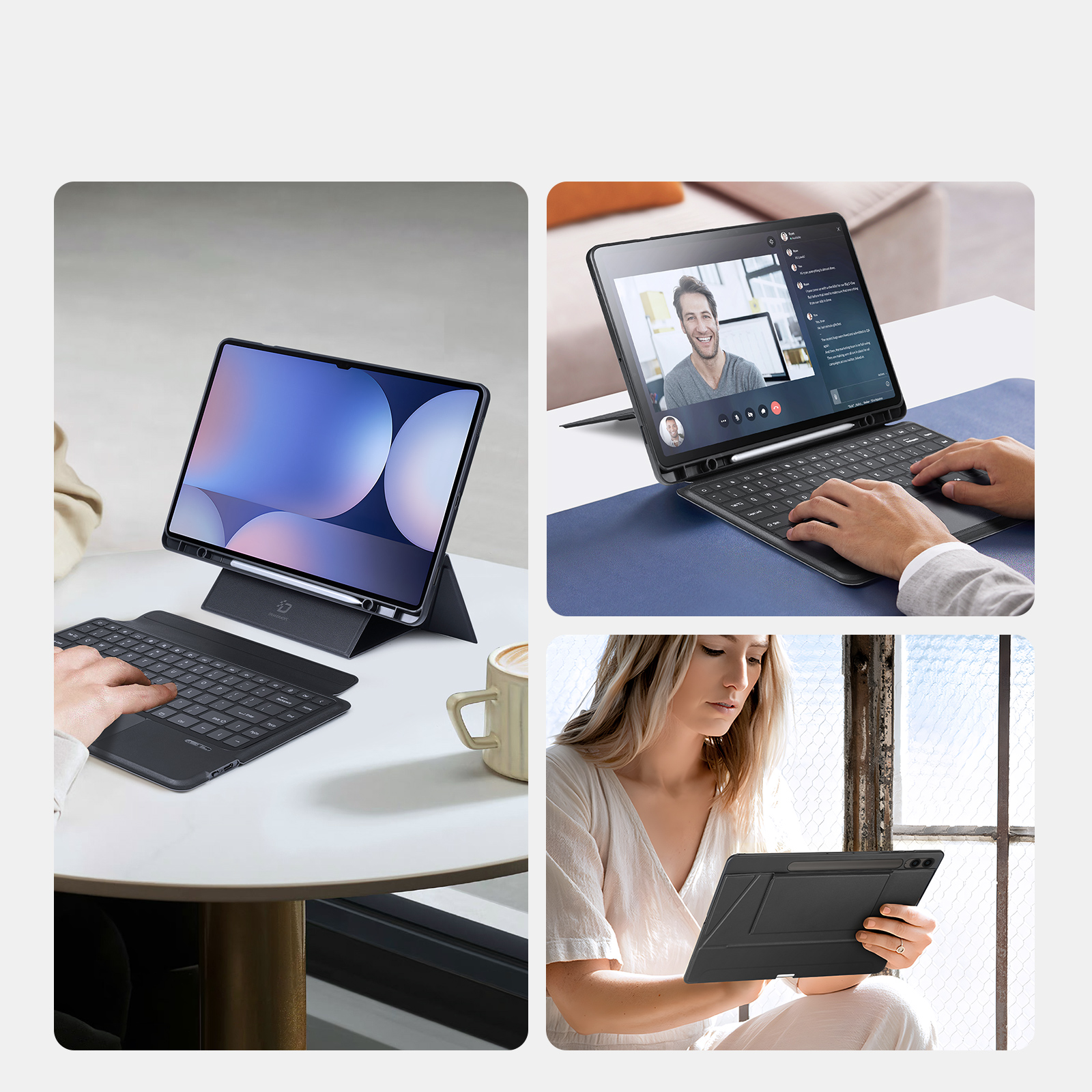 Защитный чехол подставка с клавиатурой (RUS) от Dux Ducis для Samsung Tab S10 Ultra, S9 Ultra и S8 Ultra, серия DK Series Keyboard, русская клавиатура с подсветкой