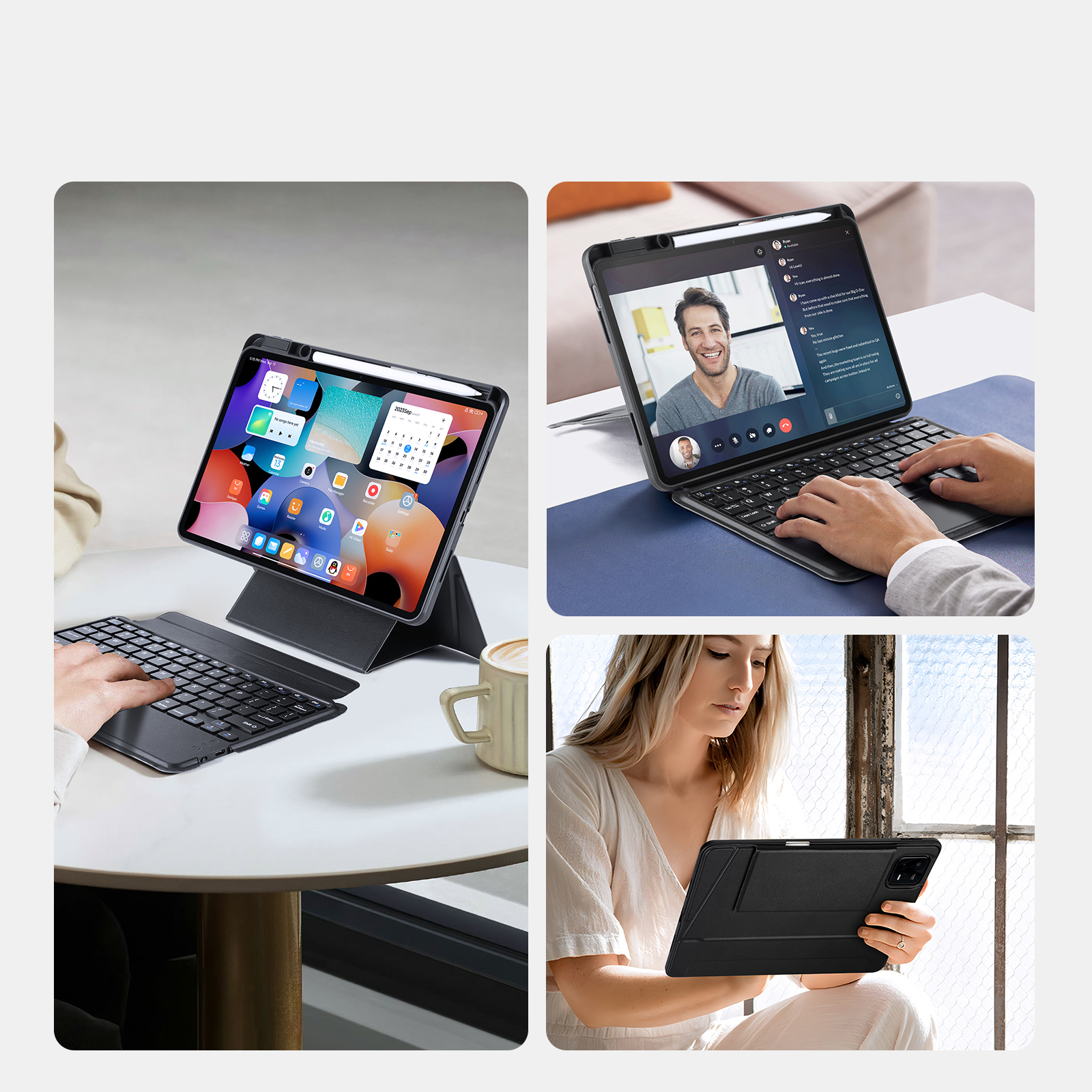 Защитный чехол подставка с клавиатурой (RUS) от Dux Ducis для Xiaomi Pad 6 и Pad 6 Pro, серия DK Series Keyboard, русская клавиатура с подсветкой