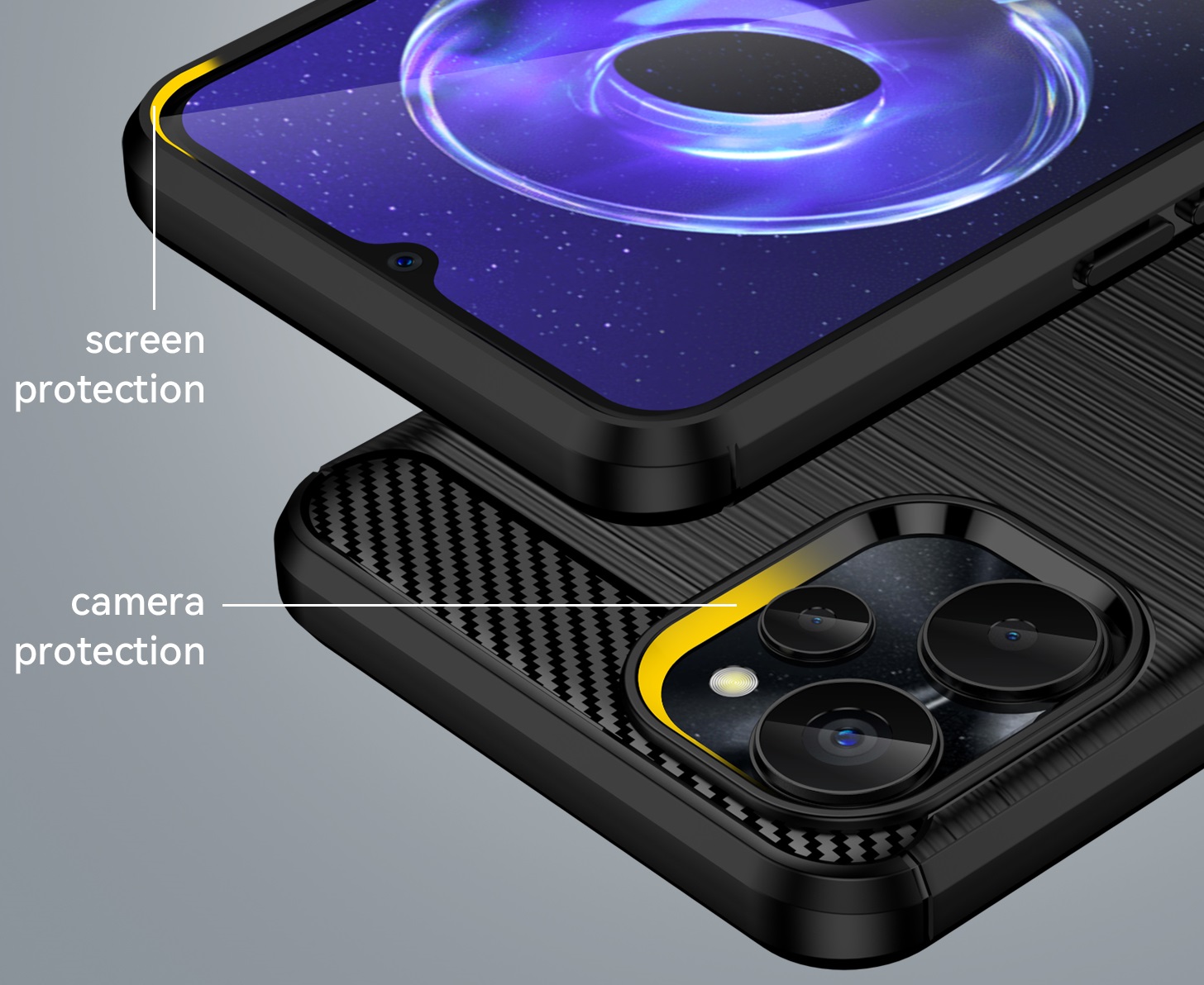 Серия Carbon – коллекция чехлов высокой степени защиты от Caseport. В основе прочный и гибкий термопластичный полиуретана премиум-качества, а также вставки в стиле карбон, в тоже время чехол тонкий и очень легкий не утяжеляя и не делая ваш телефон более громоздким. Защита камеры с подъемом на 1,5мм предотвращают повреждения камеры.