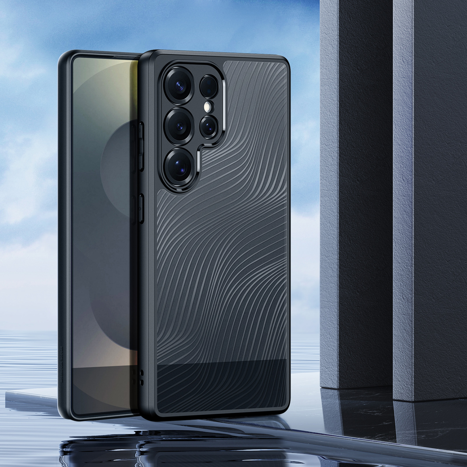 Тонкий чехол с мягкими черными рамками от Dux Ducis серии Aimo Series Case для смартфона Samsung Galaxy S25 Ultra изготавливается из экологичных материалов путем высокоточного литья под давление с высокой температурой.